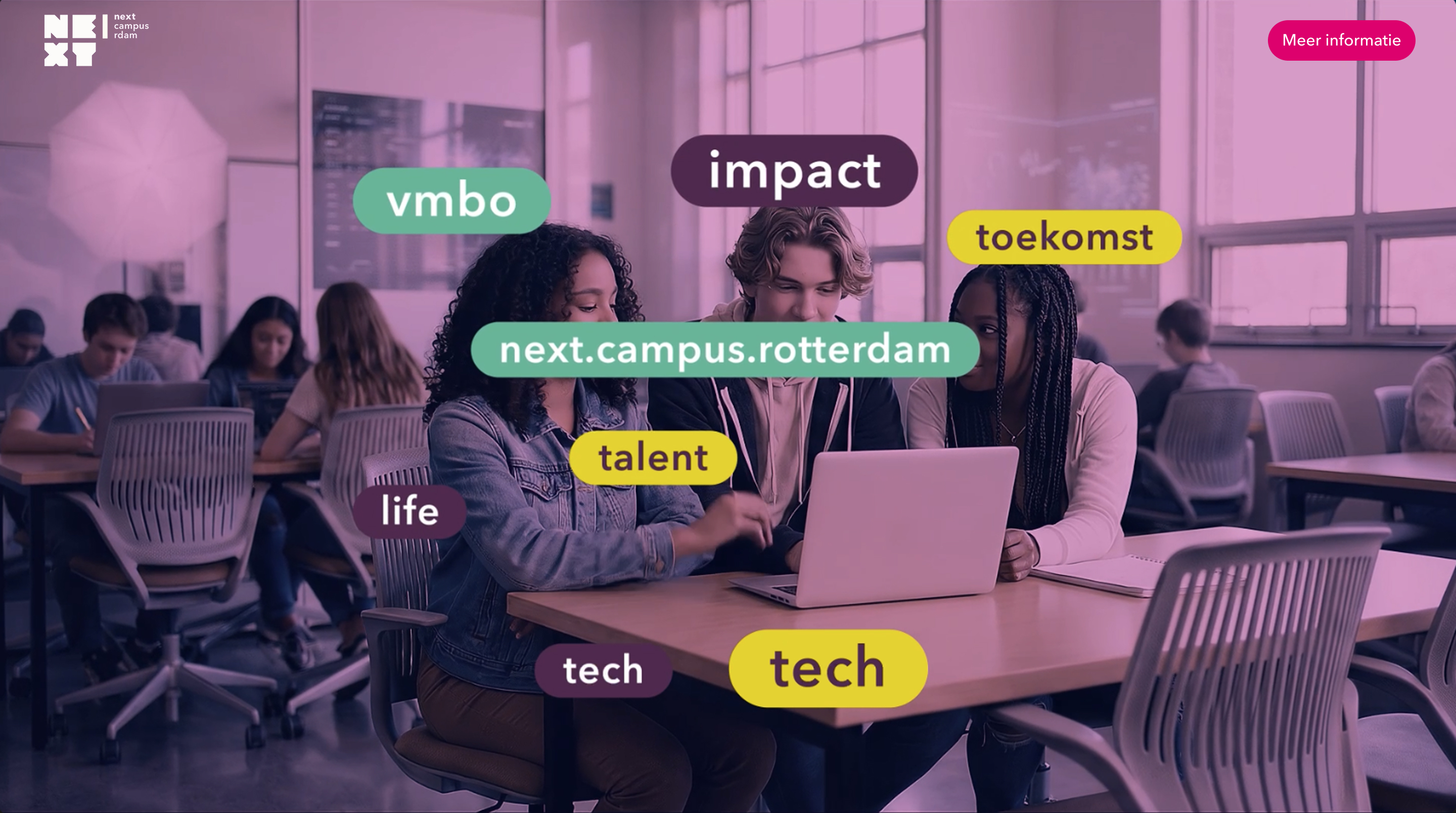 Next Campus Rotterdam is er voor leerlingen die praktisch zijn ingesteld, ouders die toekomstgericht onderwijs zoeken en partners die willen investeren in jong talent.